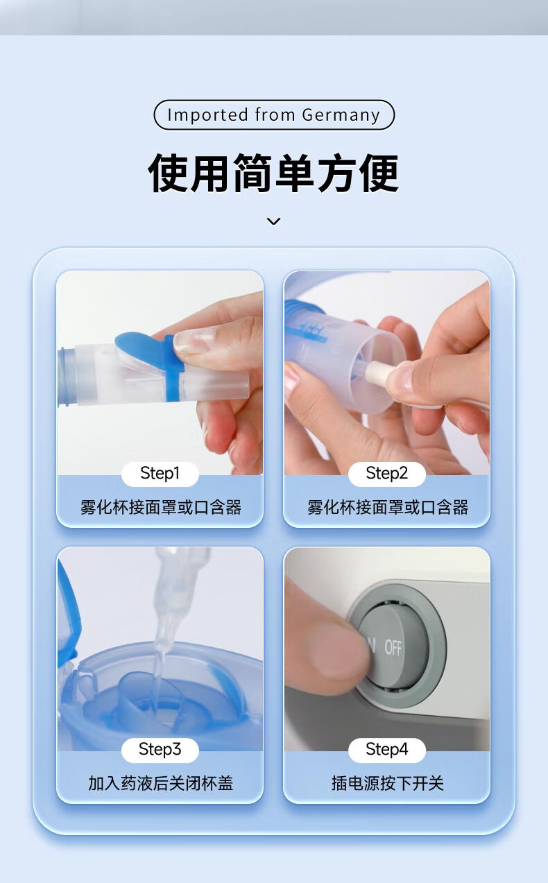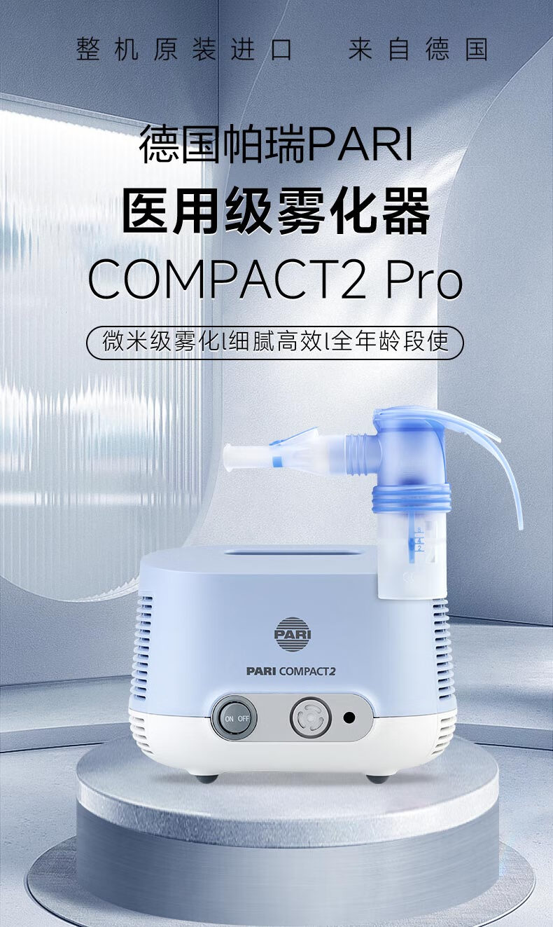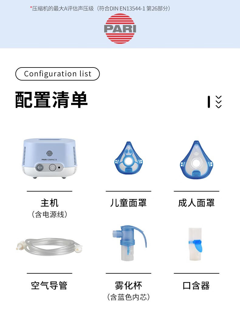PARI COMPACT2 压缩机与 PARI LC SPRINT 雾化杯(蓝色喷嘴附件)结合使用