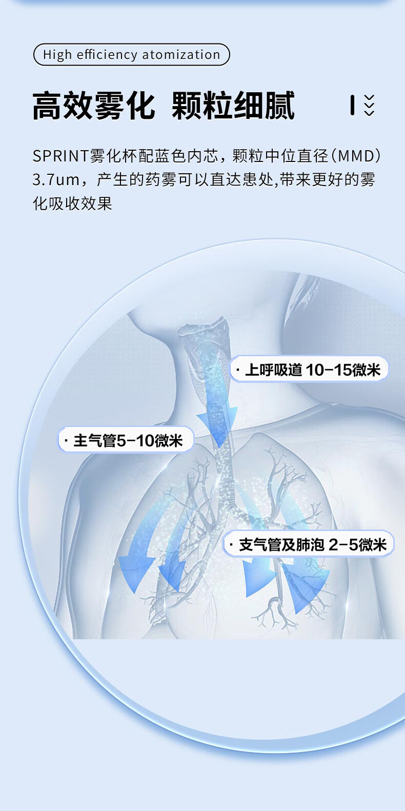 √配备经临床验证的 PARI LC SPRINT 雾化杯(蓝色喷嘴),即使在较短的吸入时间内,也能实现药物肺部高沉积